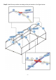 Step8: Installation of top mesh.The laying mesh can be pre-cut to 6.2x1m. (a)The two pieces of mesh are joined using PVC lashing rope piercings. L=6.2m (b)Cut off the excess length of mesh if necessary. (c)Secure the mesh to the frame Extra mesh can be buried in the soil. with cable ties. Cut off the excess length of cable ties.
