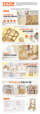 Toddler Step Stool 150lbs. Load Natural Pine Wood Toddler Stool Helper with Safety Rail for Bedroom Bathroom Kitchen Kid