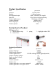 Product components and accessories Charging When the battery power is low, it needs charging, and the method is as below: 1、Take out the battery and charger from the box. 2、Connect the charger to the battery. 3、Connect the charger to the alternating current of 100-240v. The red indicator means charging. 4、The green indicator means finishing charging. Notes: to make sure the battery using age longer, please recharge it timely; otherwise, it will be unable to be recharged.