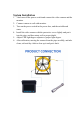 System Installation 1. Vital: turn off the power switch and connect the video camera and the monitor. 2. Connect camera to coil with monitor . 3. Turn on the power switch in the power box, and the switchboard starts. 4. Install the video camera with the protective cover slightly and put it into the pipe, and then rotate coil to proper depth. 5. Adjust LED light degree adjuster to proper light degree. 6.