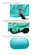 INSTALLATION STEPS A: Roller (Product color is subject to actual configuration) 1.Make sure the packing is complete and takeout the inflatable from the packing box. 2.Place the air cushion on the ground to open. 3.Turn the inflatable valve open against clockwise.