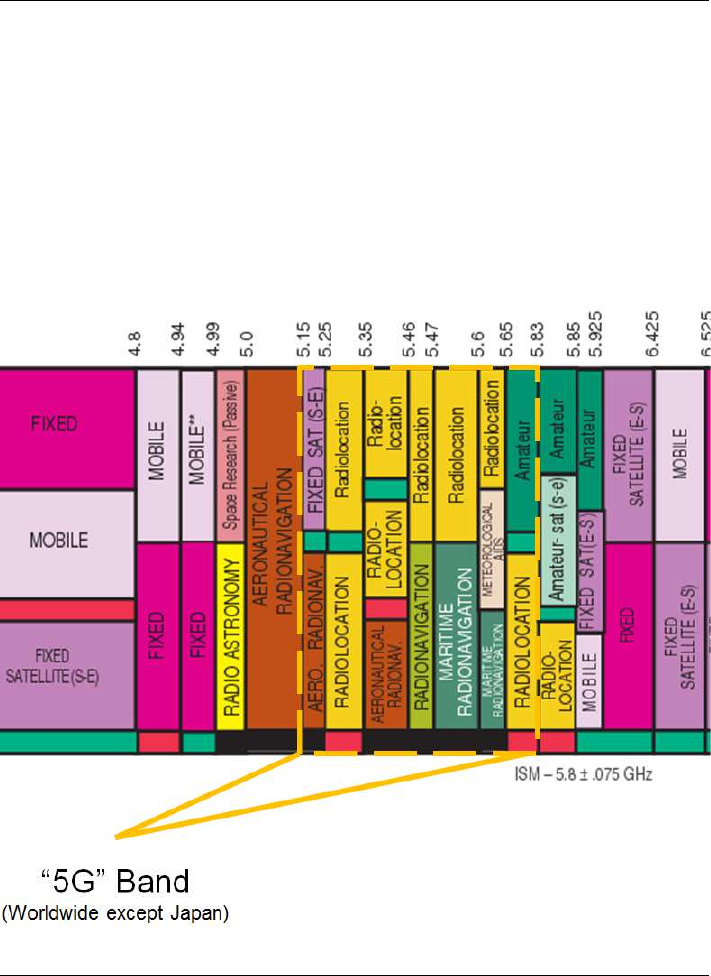 the spectrum from 5.18 – 5.835 GHz. Note that another ISM band exists here (cord-