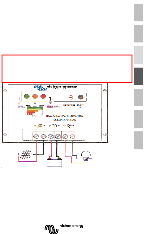 • Schließen Sie die Batterie immer zuerst an, damit der Regler die