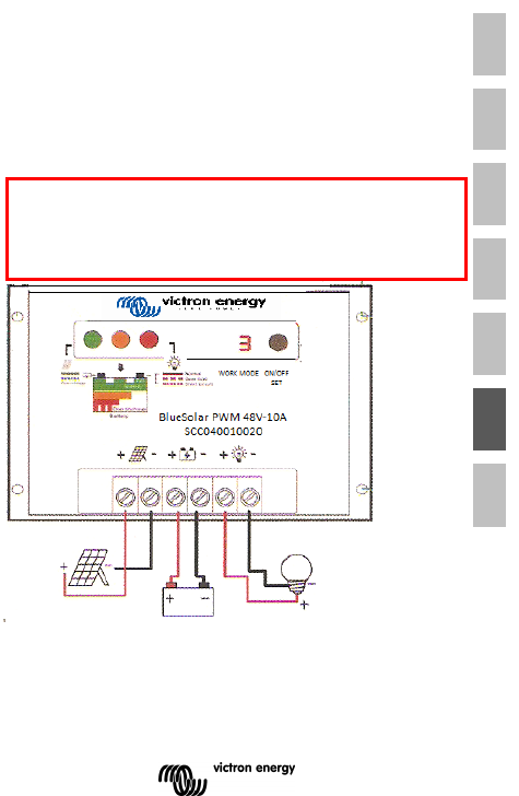 • Anslut alltid batterierna först så att regulatorn kan detektera