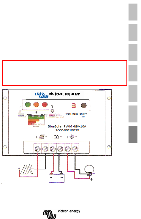 • Connettere sempre prima la batteria, per permette al regolatore di