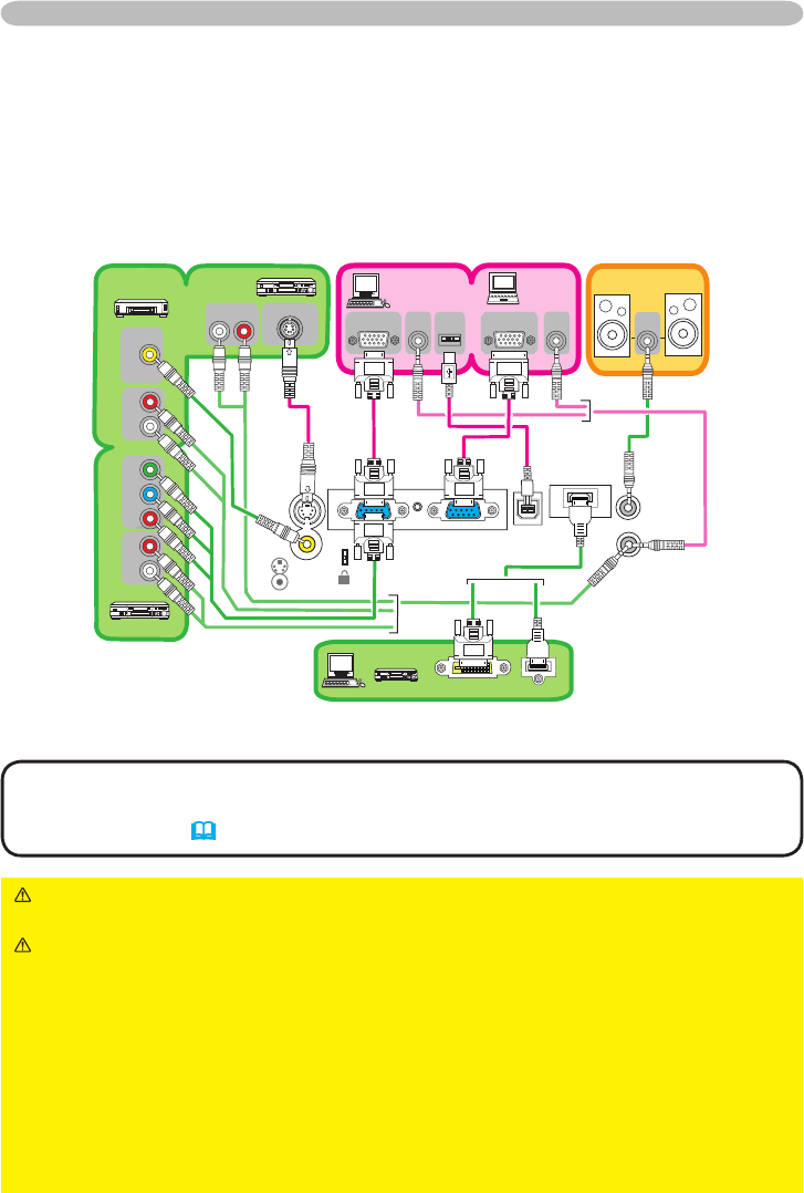 Be sure to read the manuals for devices before connecting them to the projector.