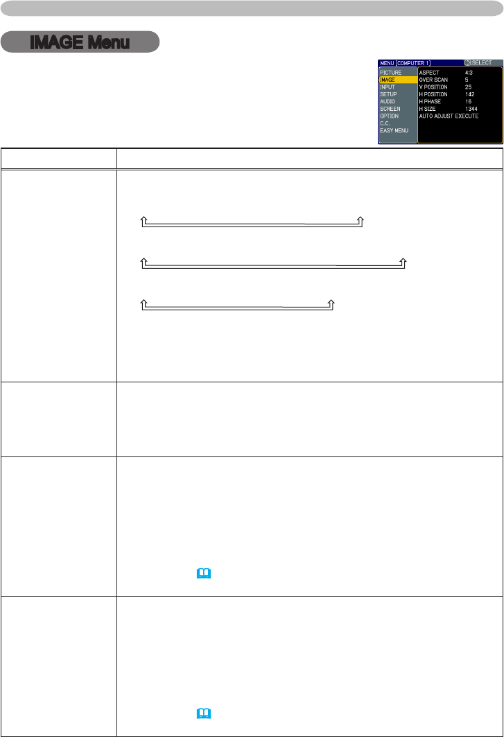 Using the ▲/▼ buttons adjusts the over-scan ratio.