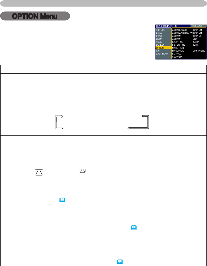 Using the ▲/▼ buttons turns on/off the automatic keystone function.