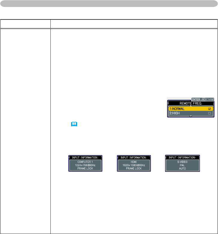 the initial setting. Note that the items LAMP TIME, FILTER TIME,