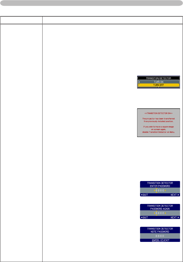 4.2-1 Use the ▲/▼ buttons on the SECURITY menu to select Transition