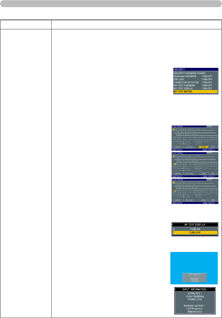 • This function is available only when the MY TEXT