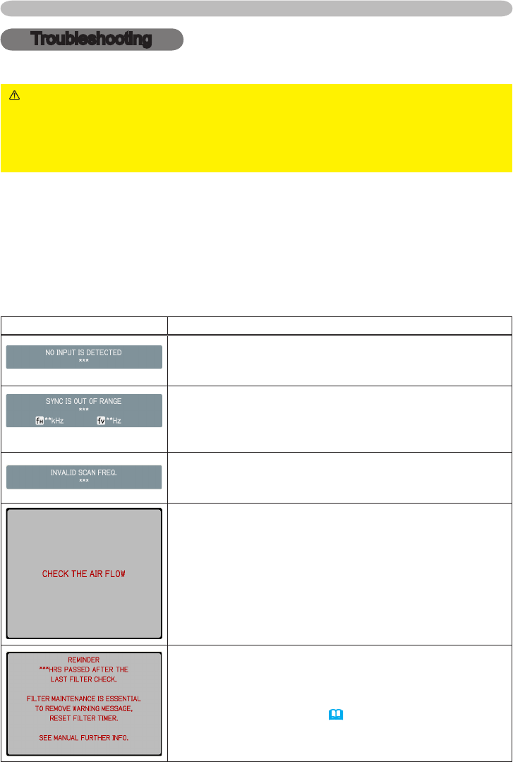 Otherwise if a problem occurs with the projector, the following checks and measures are