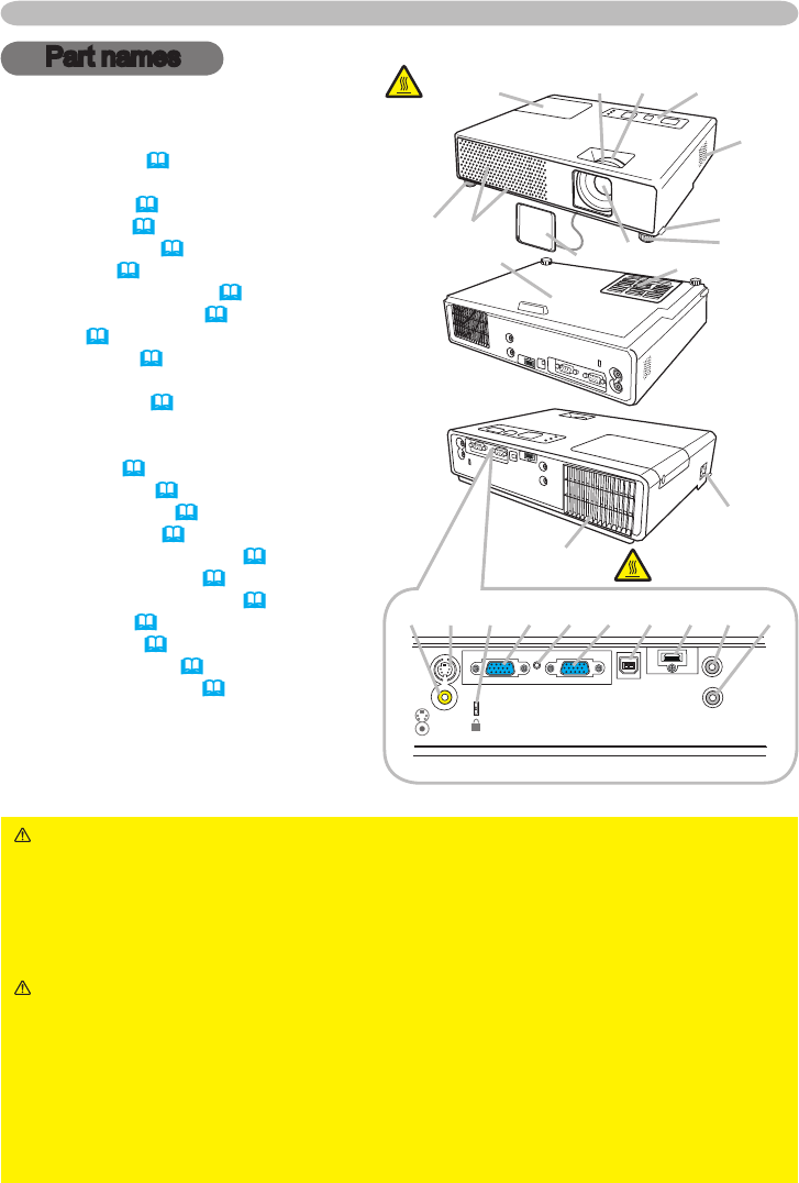 WARNING ►HOT! : Do not touch around the lamp cover and the exhaust