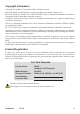 Copyright Information Copyright © ViewSonic® Corporation, 2006. All rights reserved. Macintosh and Power Macintosh are registered trademarks of Apple Computer, Inc. Microsoft, Windows, Windows NT, and the Windows logo are registered trademarks of Microsoft Corporation in the United States and other countries. ViewSonic, the three birds’ logo, OnView, ViewMatch, and ViewMeter are registered trademarks of ViewSonic Corporation. VESA is a registered trademark of the Video Electronics Standards Association.