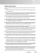 Important Safety Instructions 1. Read these instructions completely before using the equipment. 2. Keep these instructions in a safe place. 3. Heed all warnings. 4. Follow all instructions. 5. Do not use this equipment near water. Warning: To reduce the risk of fire or electric shock, do not expose this apparatus to rain or moisture. 6. C lean with a soft, dry cloth. If further cleaning is required, see “Cleaning the Display” in this guide for further instructions. 7.