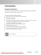Introduction Projector Features The projector integrates high-performance optical engine projection and a user-friendly design to deliver high reliability and ease of use. The projector offers the following features: Single chip 0.55” Texas Instruments DLP® technology XGA (1024 x 768 pixels) 1.2X manual zoom lens Auto image re-sizing (Auto-Sync.