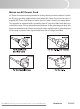 Adjusting Projection Image Size Refer to the graphic and table below to determine the screen size and projection distance. 275.00 137.40 82.40 256.00 57.70 128.00 27.50 76.50 53.70 25.60 1.0m (Min.) 2.1m 3.0m 5.0m 10.0m (Max.) PROJECTION 1.0 2.1 3.0 5.0 10.0 Wide 29.0 60 86.0 143 285 Tele 25.0 52 74.0 123 246 DISTANCE (METER) 4:3 SCREEN SIZEDIAGONAL (INCH) Position the projector in a horizontal position; other positions can cause heat build-up and damage to the projector.