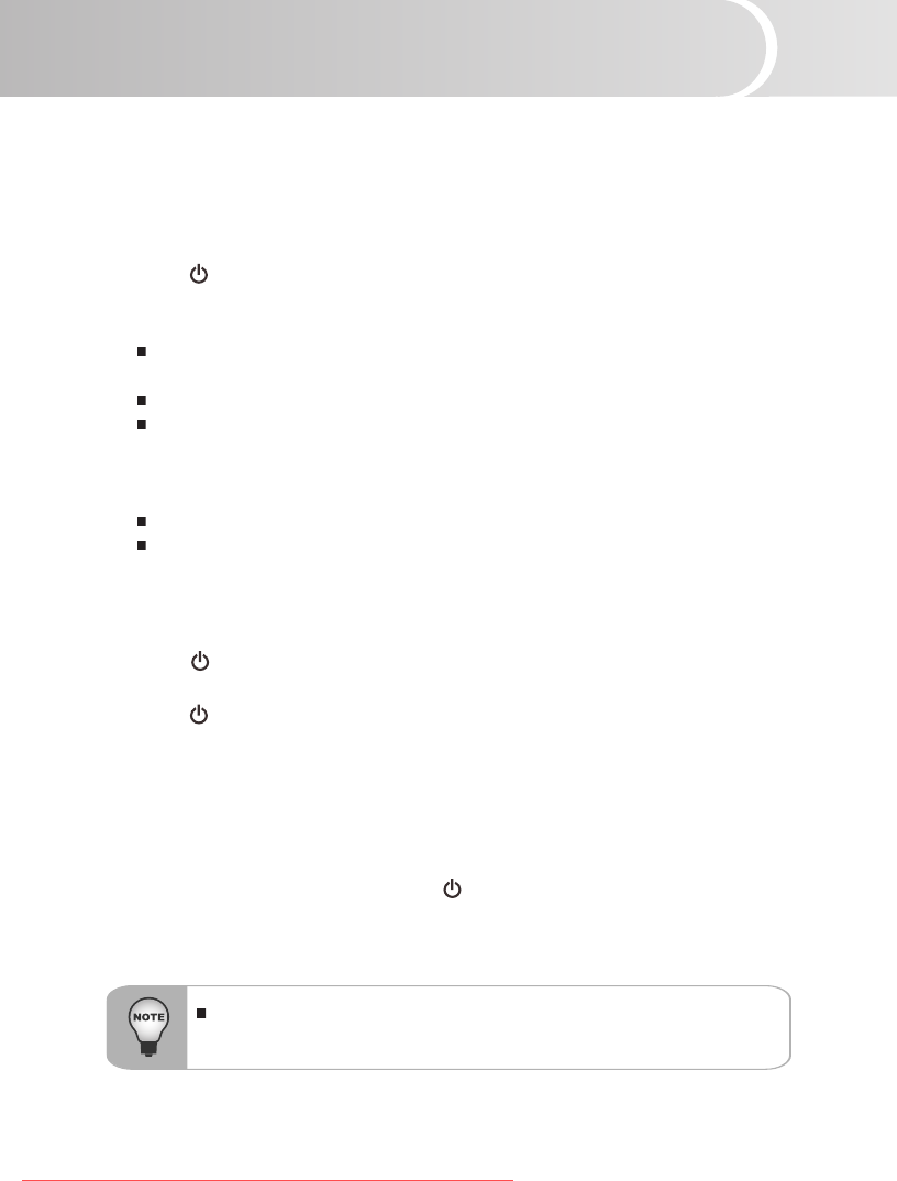 1. Press button to turn off the projector lamp. You will see a message “Power