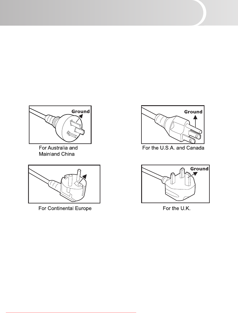 AC Power Cord must meet requirement of country where you use a projector. Conrm