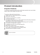 English Product Introduction Projector Features The projector integrates high-performance optical engine projection and a user-friendly design to deliver high reliability and ease of use. The projector offers the following features: Single chip 0.55” Texas Instruments DLP™ technology XGA (1024 x 768 pixels) Compact size, light weight for portability 1.2x manual zoom lens Auto image re-sizing (Auto-Sync.) to 1024 x 768 full screen with scaling compression compatibility for VGA, SVGA, XGA and SXGA*.