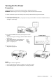 Set the power switch to [ | ] (ON). The projector will go to STANDBY mode and the POWER indicator