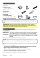 Content Content About this manual . . . . . . . . . . 1 Content . . . . . . . . . . . . . . . . . . 2 Projector features . . . . . . . . . . 3 Preparations . . . . . . . . . . . . . . 3 About contents of package . . . . . . . 3 Fastening the lens cover . . . . . . . . . 3 Part names . . . . . . . . . . . . . . . 4 Projector . . . . . . . . . . . . . . . . . . . . . 4 Control buttons . . . . . . . . . . . . . . . . 6 Remote control . . . . . . . . . . . . . . . . 6 Setting up . . . . . . . . . . . . . . . .
