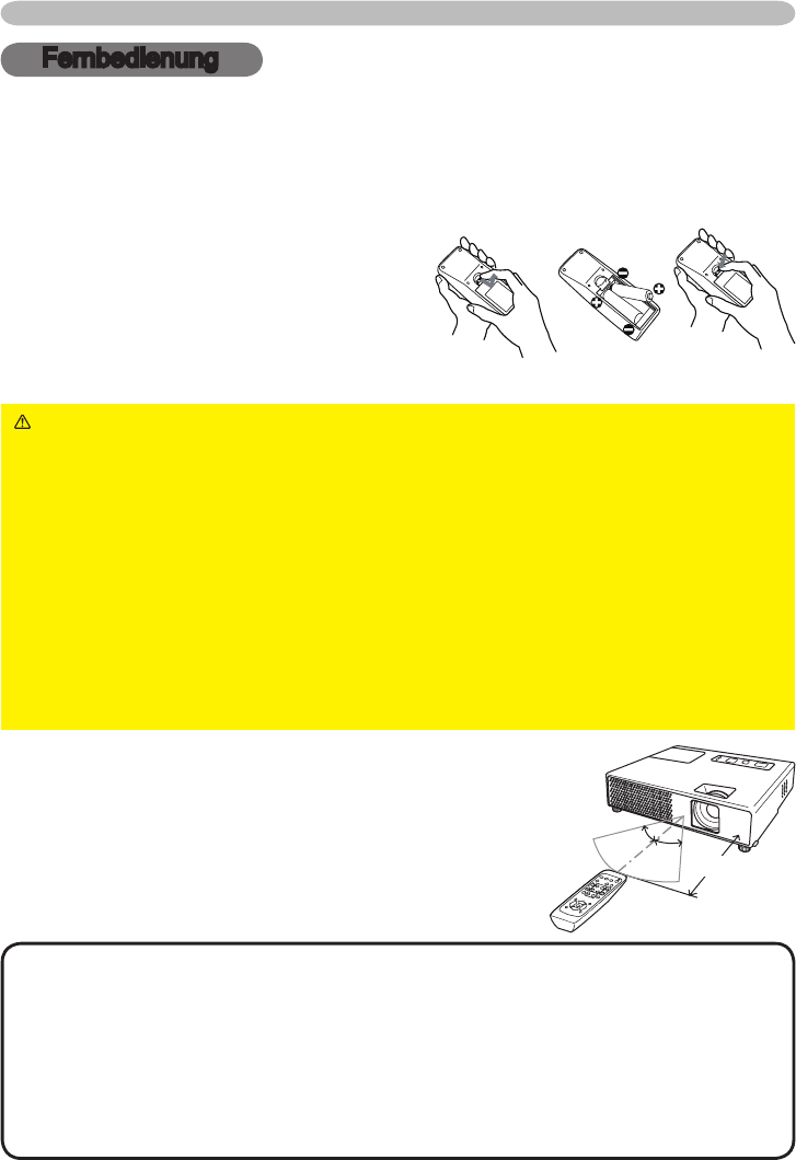 achten, dass sich keine Gegenstände zwischen Ausgabesignal der Fernbedienung und Projektor benden.