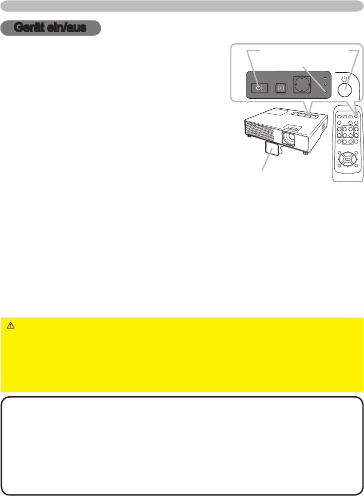 ►Ein starkes Licht wird abgegeben, wenn der Projektor