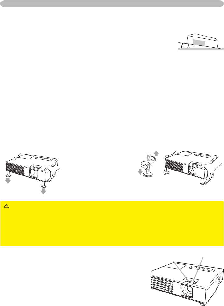 VORSICHT ►Bedienen Sie nicht die Nivellierknöpfe, ohne den Projektor