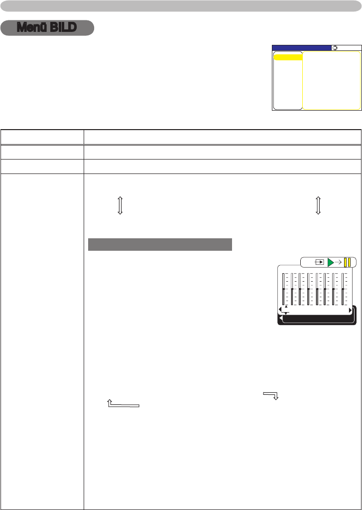 Im Menü BILD können die in der nachstehenden Tabelle