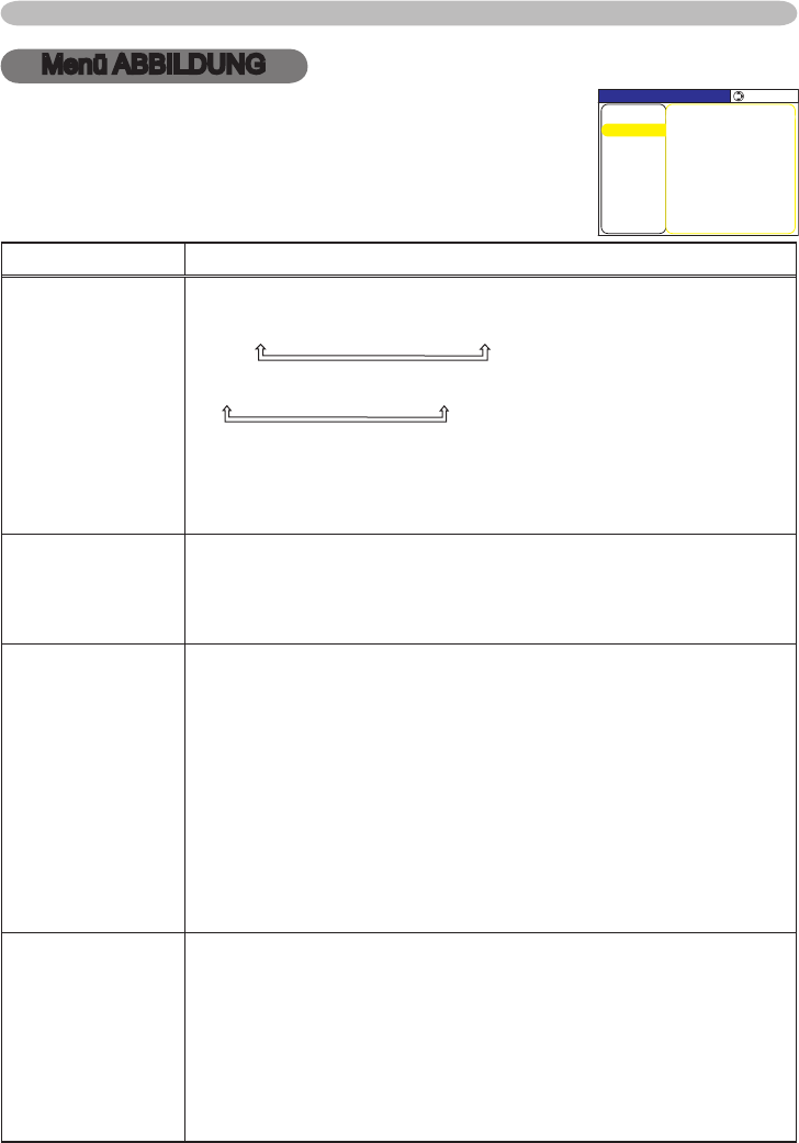 Sie bitte die horizontale Position auf Vorgabeeinstellung zurück. Durch Drücken der Taste