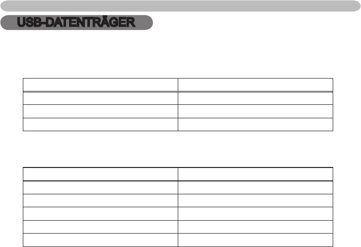 USB-Speicher FAT12/FAT16/FAT32 (NTFS-Format wird nicht unterstützt.)