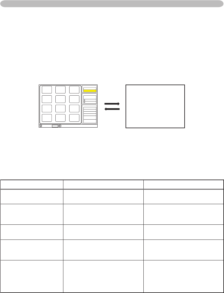 schaltet der Projektor zurück auf Miniaturbild-Anzeige.