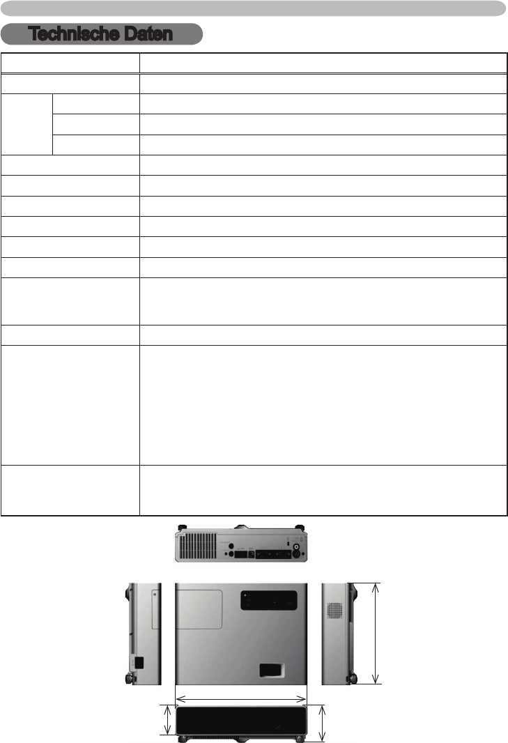 * Hervorstehende Teile sind nicht mit eingeschlossen. Bitte