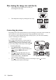 • Do not look into the lens while the lamp is on. The strong light from the lamp may cause