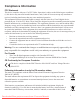 Compliance Information FCC Statement This device complies with part 15 of FCC Rules. Operation is subject to the following two conditions: (1) this device may not cause harmful interference, and (2) this device must accept any interference received, including interference that may cause undesired operation. This equipment has been tested and found to comply with the limits for a Class B digital device, pursuant to part 15 of the FCC Rules.