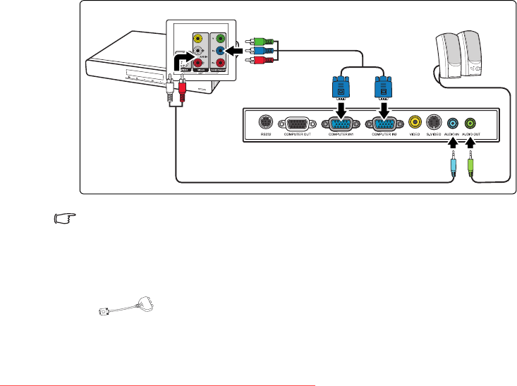 • The projector is only capable of playing mixed mono audio, even if a stereo audio input is