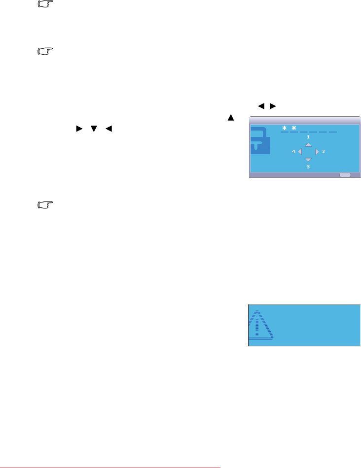 the projector. If you enter the wrong password, the