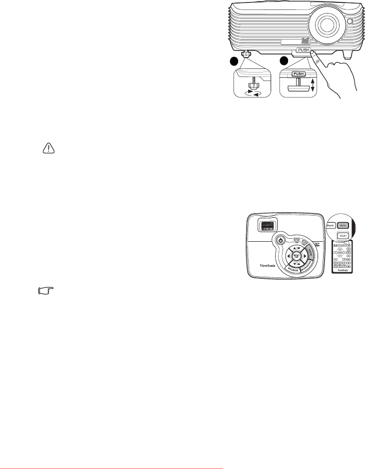 • Be careful when you press the adjuster button as it is close to the exhaust vent where hot