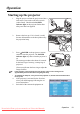 • Do not look into the lens while the lamp is on. The strong light from the lamp may cause