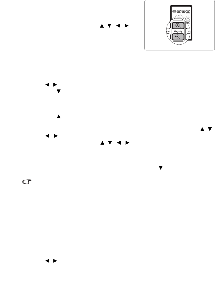 If you need to find the details on the projected picture, magnify the picture. Use the