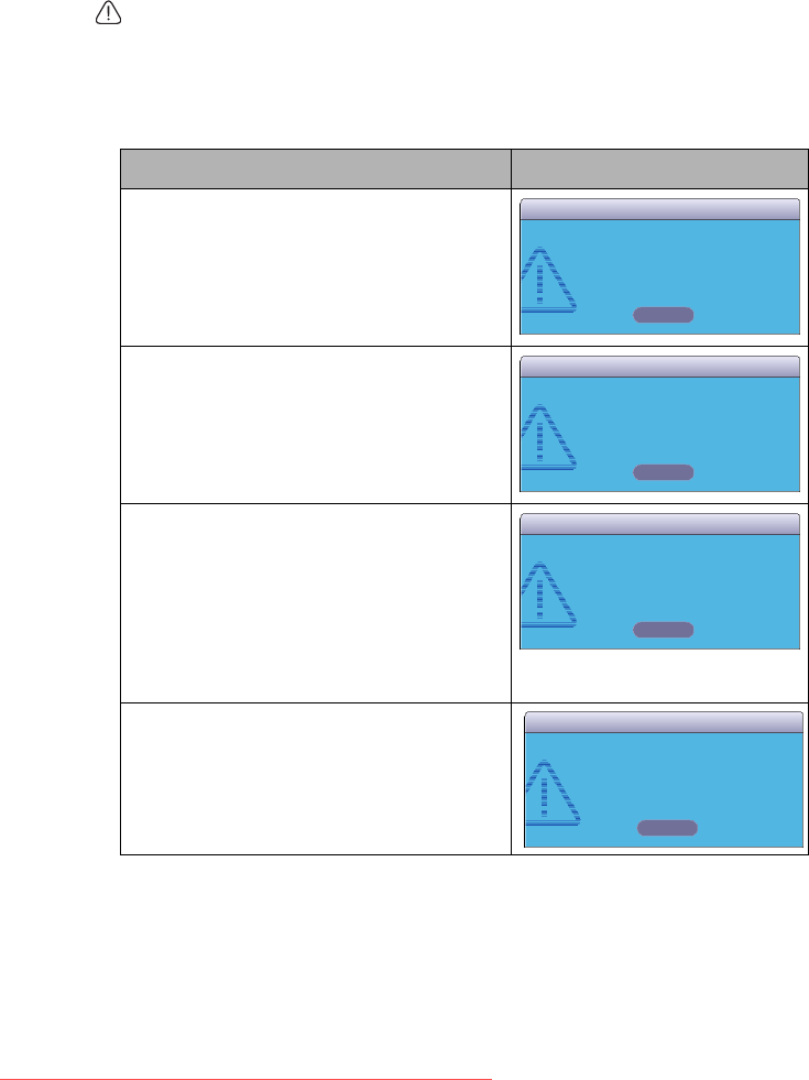 The Lamp indicator light and Temperature warning light will light up if the lamp becomes too