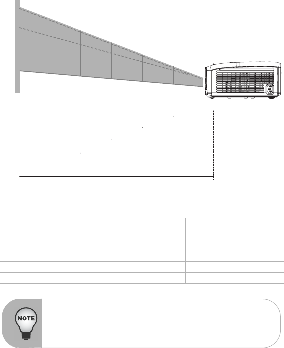 Refer to the graphic and table below to determine the screen size and projection distance.