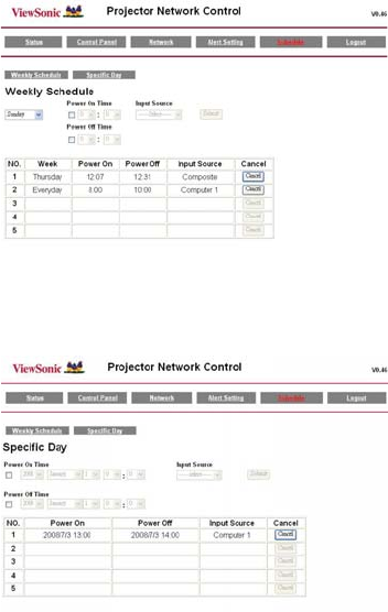 Click “Submit” button to create new schedule. To delete schedule, click “Cancel”.