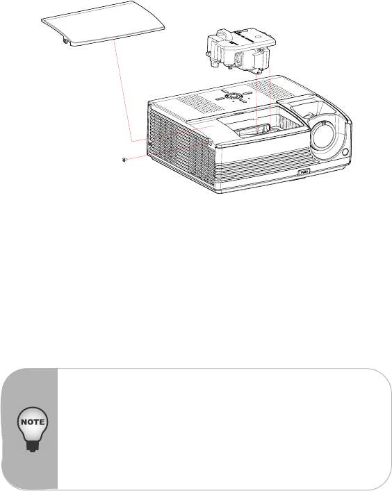 - 7. Replace the lamp cover and tighten the screw.