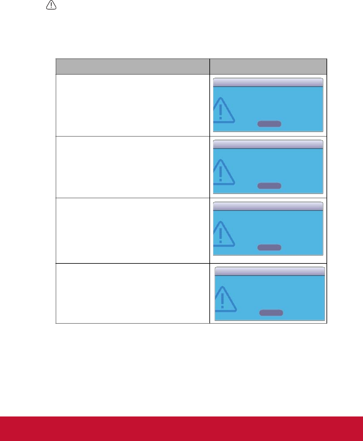The following lamp warning displays will remind you to change the lamp.