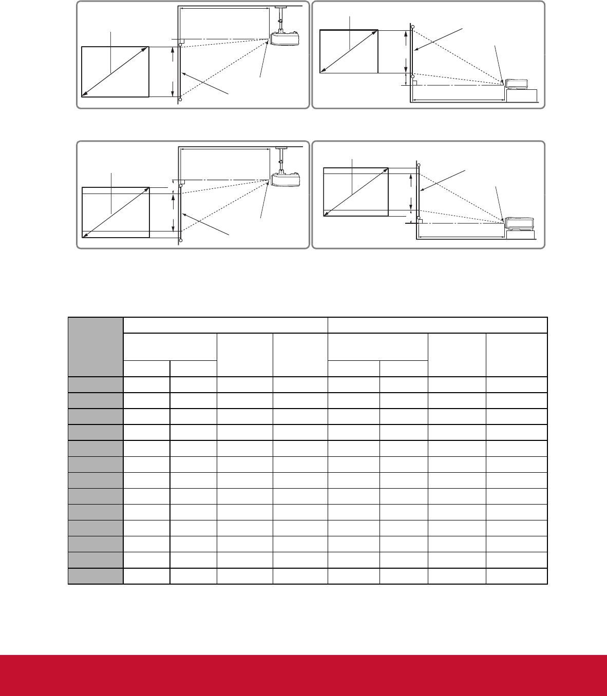Refer to "Dimensions" on page 63 for the center of lens dimensions of this projector before