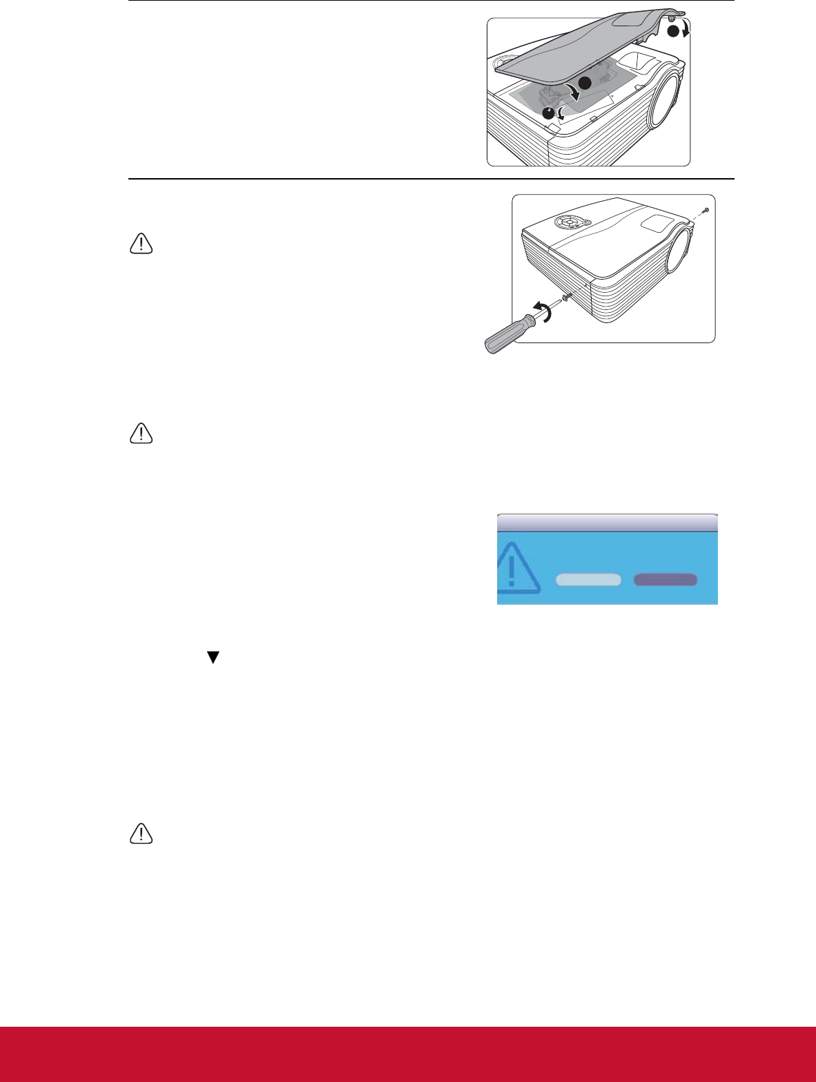 14. Tighten the screws that secure the lamp