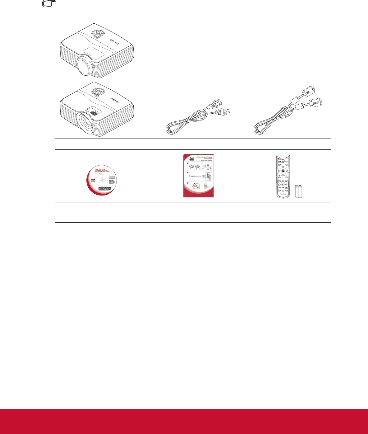 Carefully unpack and verify that you have all of the items shown below. If any of these