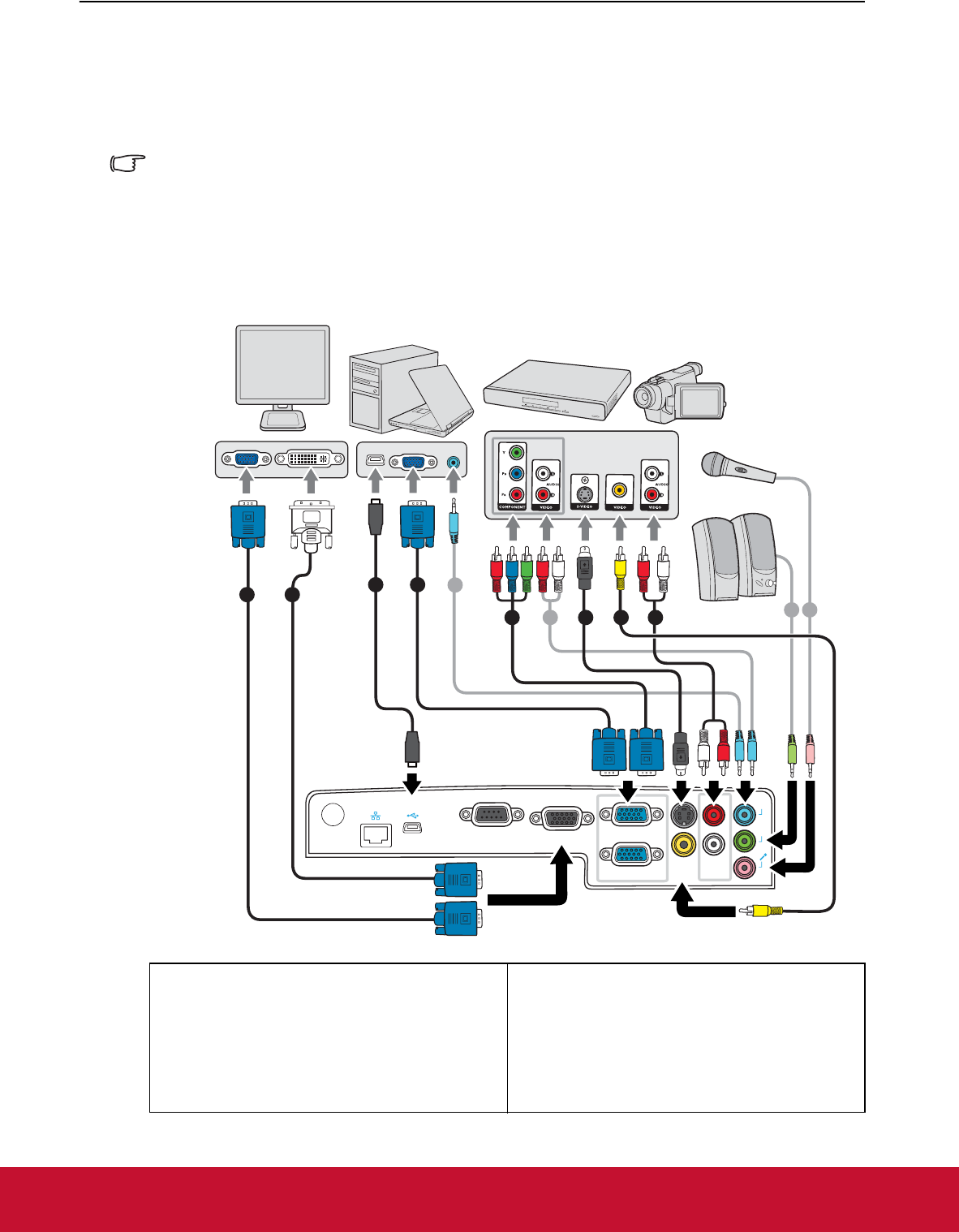 • In the connections shown below, some cables may not be included with the projector (see